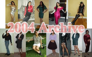 Follow this link to see my 2005 images: the asymmetrical outfit, the red tube dress, the green suit, the black dress suit, the khaki outfit, the white lingerie shoot, my Sunday best, the transformation, the sultry succubus, the kimono, the Penguins jersey, and the stretch leatherette dominatrix dress.